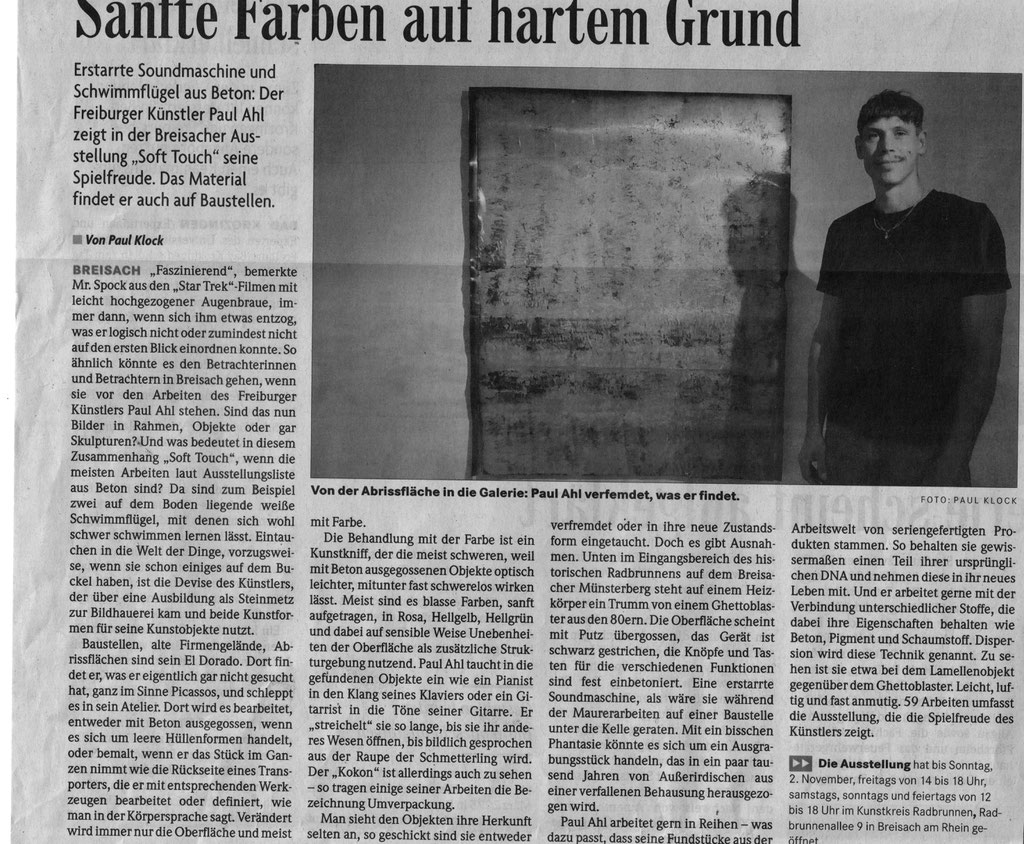 Paul Klock - Sanfte Farben auf hartem Grund, erschienen in der Badischen Zeitung, 09.10.2025.